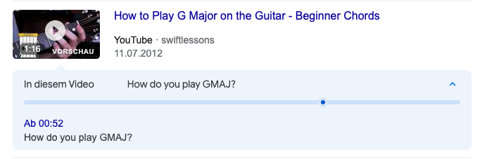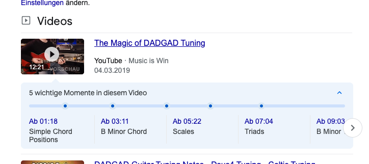 Jetzt habe ich eben bei der Recherche festgestellt, dass bei vielen Videovorschlägen nicht die erste Zeile der Videobeschreibung angezeigt wird. Es wird vielmehr ein Satz aus der Videobeschreibung angezeigt, der die gesuchten Keywords enthält (also auch Teile der Videobeschreibung, die ganz unten sind). So praktisch das auch ist, es hat mich etwas verwundert.