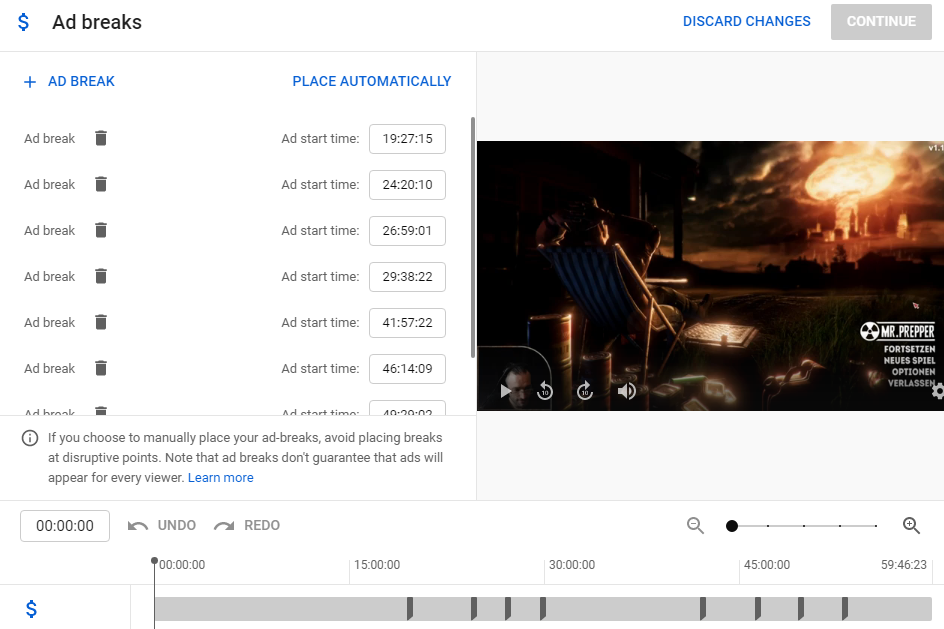 -Bei jedem Video manuell zu Anzahl der Midrolls kontrollieren und anpassen