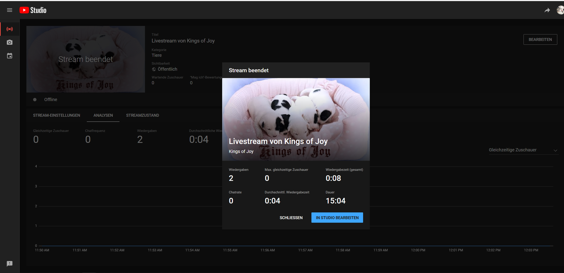 Jahrelang hat mein Livestream, den ich immer sende, wenn wir Welpen haben (1x im Jahr) reibungslos funktioniert.