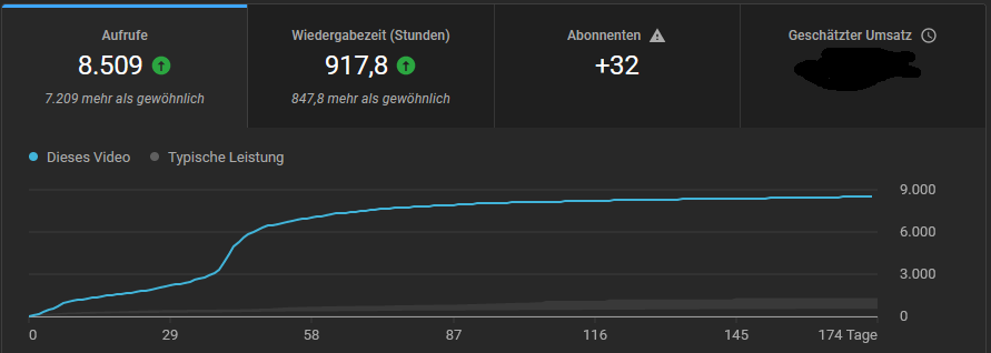 Leider gab es nur genau einen Tag an dem meine Impressionen stark anstiegen, nämlich am 7 Tag nach der Veröffentlichung. Ich hätte ehrlich gesagt gedacht, dass mein Video mit den KPIs stärker promoted wird und bin etwas verwirrt, weil ich schlecht einschätzen kann, wie es weitergeht. Habt ihr ähnliche Erfahrungen gemacht? Ist es normal, dass YT ganz kurz stark promoted und danach nicht mehr? Kommt nach eurer Erfahrung eine zweite Promotion oder wars das jetzt mit dem Video? Ich dachte eigentlich, dass YT das Video einer immer grösser werdenden Gruppe zeigt, wenn retention und ctr konstant bleiben..