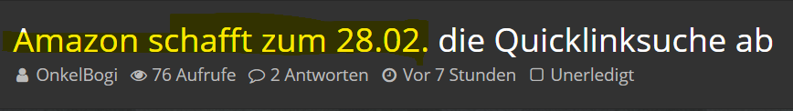 eine kurze Frage an die jenigen von euch die im Amazon Affiliate Programm sind. Ihr bekommt ja sicher auch die Meldung das die Quicklinksuche zum Monatsende abgestellt wird. Anbei mal das Zitat von Amazon: