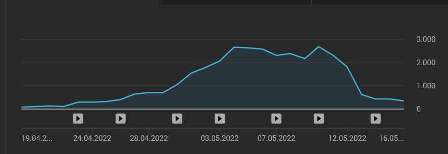 Ab 11. Mai gingen die Aufrufzahlen und Impressionen genauso schnell zurück, wie sie angestiegen sind:
