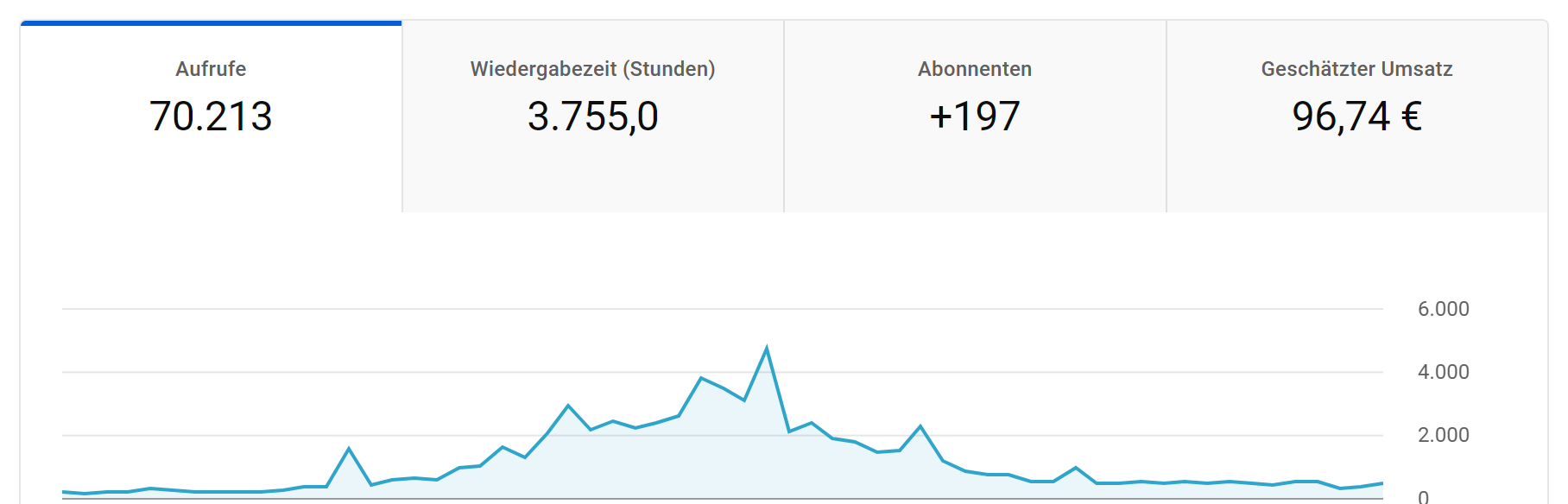 Innerhalb von 3 Monaten hatte ich dann plötzlich einen Zuwachs von 100 Abonnenten und es schien in dieser Tonart weiterzugehen. Täglich kamen im Schnitt 3 weitere Abonnenten hinzu. Gleichzeitig wurden so viele Videos angesehen, dass täglich ca. 10 Stunden Watchtime dazu kam und ich mir ausrechnen konnte, ab wann ich die notwendigen Stunden und Abonnenten für eine Monetarisierung zusammen hatte, obwohl ich das anfangs gar nicht wollte.