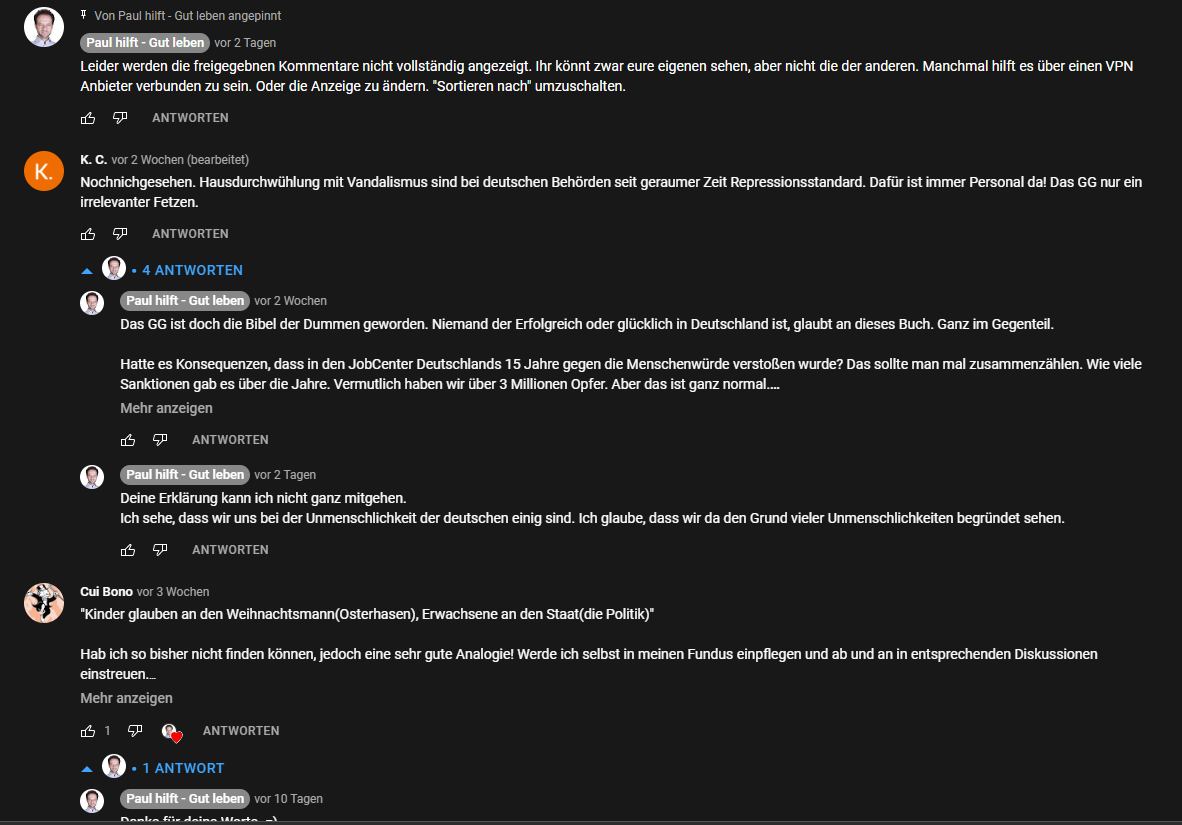 Bei diesem Video hier, steht 8 Kommentare. Es werden aber keine angezeigt. Es sind aber alle freigegeben. Wenn man die Sortierung nach "Neueste zuerst" stellt, werden 6 Angezeigt. Kann es sein, dass kritische Menschen von YT selber ausgeblendet werden? Das habe ich bei Twitch gesehen. Wenn ein Kommentator , viel rumstänkert, aber bei mir nicht, dann werden seine sachen nicht angezeigt. Kann das sein?