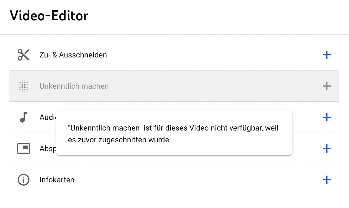 Nun kann ich es online schneiden. Aber wie es scheint, geht das alles nur sehr eingeschränkt. Von der Bedienung will ich hier gar nicht anfangen. Einerseits gut, dass es im Browser geht. Andererseits schlecht, weil es sehr umständlich ist. Nun zu meiner Frage: Gibt es da eine besondere Reihenfolge die man beachten muss? Weil ich ein Video geschnitten habe (Zu & Ausschneiden) und nun einen Teil, davon nicht unkenntlich machen kann.