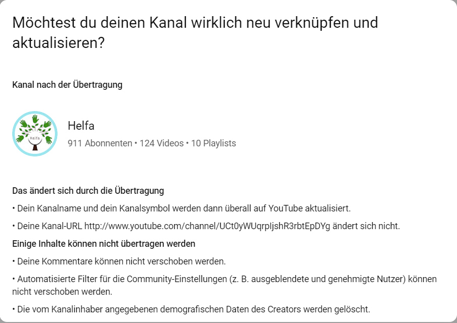 ich habe die Ehrenvolle Aufgabe, einen Youtube-Kanal umzuziehen.