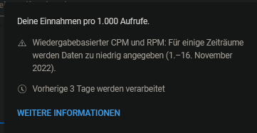 bei mir ist der RPM auch plötzlich vom 03.11. - 08.11. auf null. Bei mir steht noch der Hinweis, dass die Daten vom 01.-16. November zu niedrig angegeben sind. Ich gehe davon aus, dass es nacher oder Morgen wieder passen sollte. Hab auch gerade überall das Dreieck mit dem Ausrufezeichen angezeigt. Hatte ich schon öfters in der Vergangenheit und hat sich bis jetzt immer von selbst wieder erledigt/korrigiert.