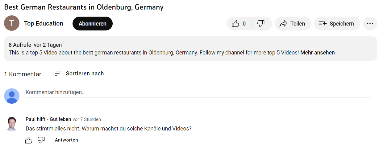 Doch vor allem, ist der gesamte Inhalt falsch. Denn die Restaurants in Oldenburg gibt es, aber die Fotos dazu kommen 100%tig nicht von dort und auch sind das keine besonders guten Restaurants. Also der Inhalt ist Müll.