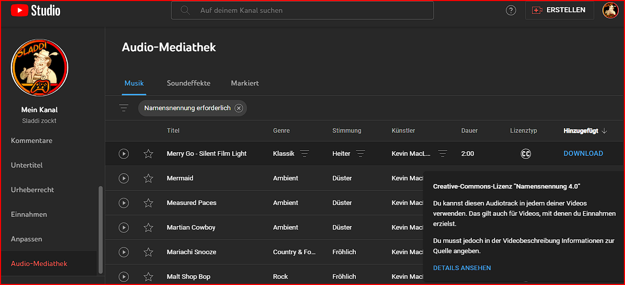 ich kenne entfernt jemanden der fuer seine Youtube-Clips Musik aus youtube.com/c/audiolibrary-channel verwendet,