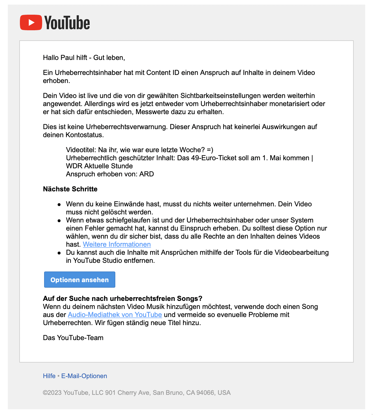 Ich habe keine Beschwerde eingereicht. Verstehe ich das richtig, dass die nur das Geld haben wollen? Also kann ich daraus doch einen Clip erstellen und das als eigenständiges Video auf meinen Kanal veröffentlichen, oder? Das würde dann zwar wieder "gelb" oder "verwarnt" werden aber sonst doch nichts, oder?