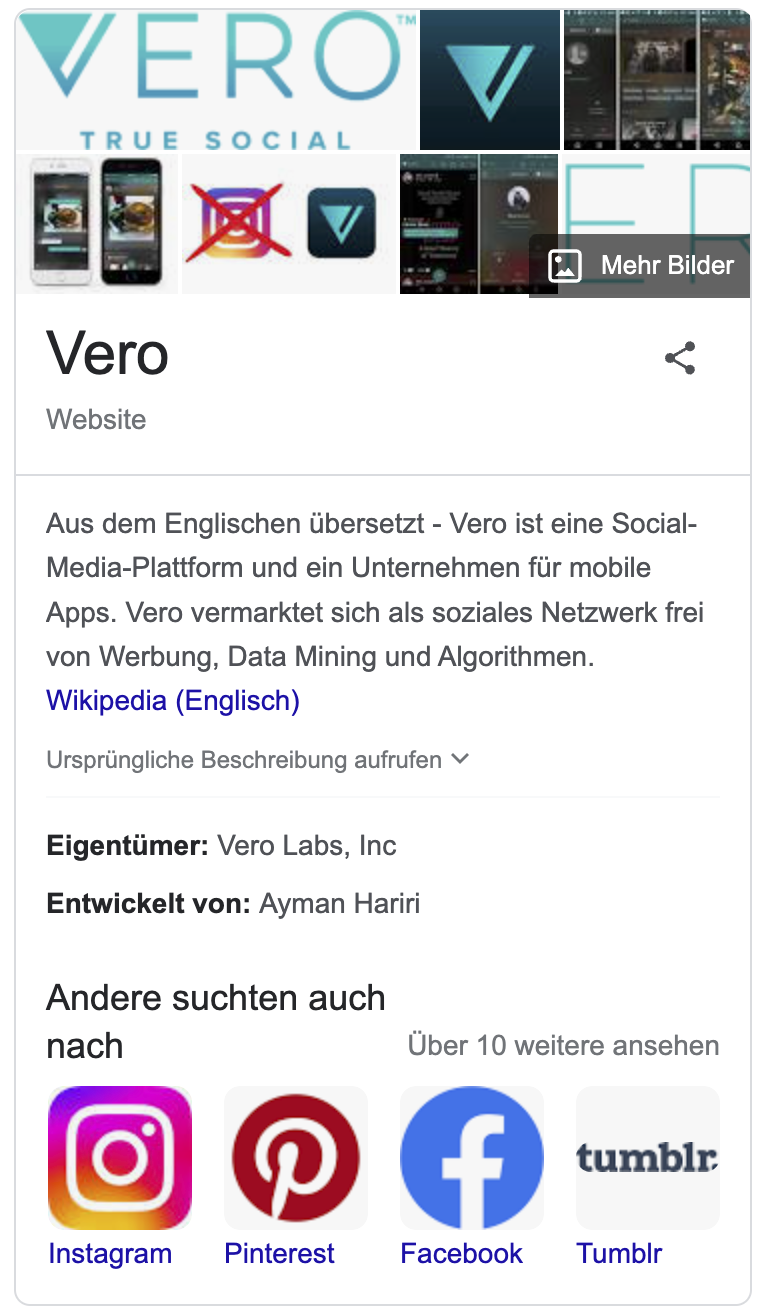 Ich habe zwar einen Instagram Account und lade hin und wieder Fotos hoch. Follower habe ich kaum welche und auf Youtube habe ich einige Videos dazu gesehen, dass VERO das neue Instagram sein soll, da Insta den Focus auf Reels gelegt hat, so wie YT jetzt auch begonnen hat Shorts vermehrt zu pushen. Ich habe aber beim surfen auch gelesen, dass VERO eher nur ein kurzer Hype war und schon wieder vorbei ist.