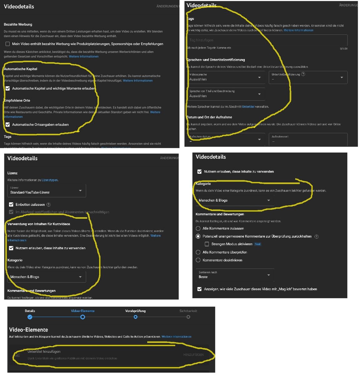 beim Hochladen von Videos gibt es Punkte, die ich nicht verstehe bzw gerne wüsste, wie ihr das ausfüllt bzw was sinnvoll ist?