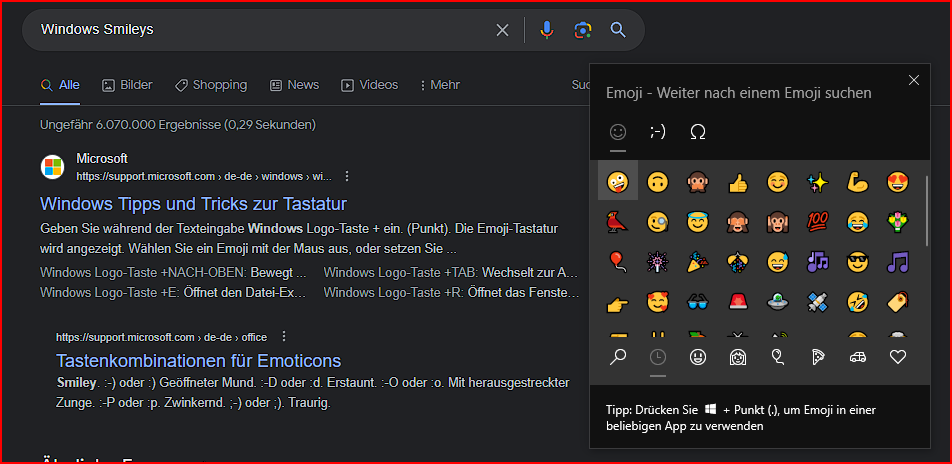 die man mit der Tastenkombination Windows-Taste und dem . aufruft.