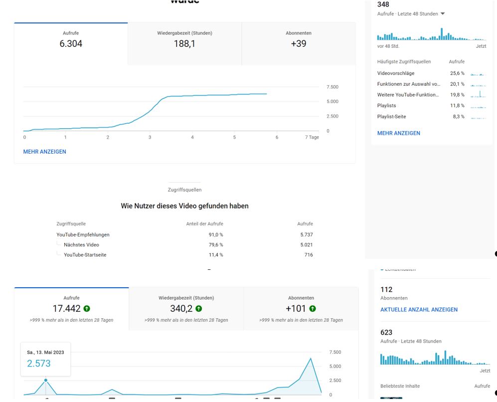 Ich hatte 2 Videos, die wirklich gut liefen, aber erst seit 3 Tagen. Die Zahl meiner Abonnenten wuchs ... und dann: