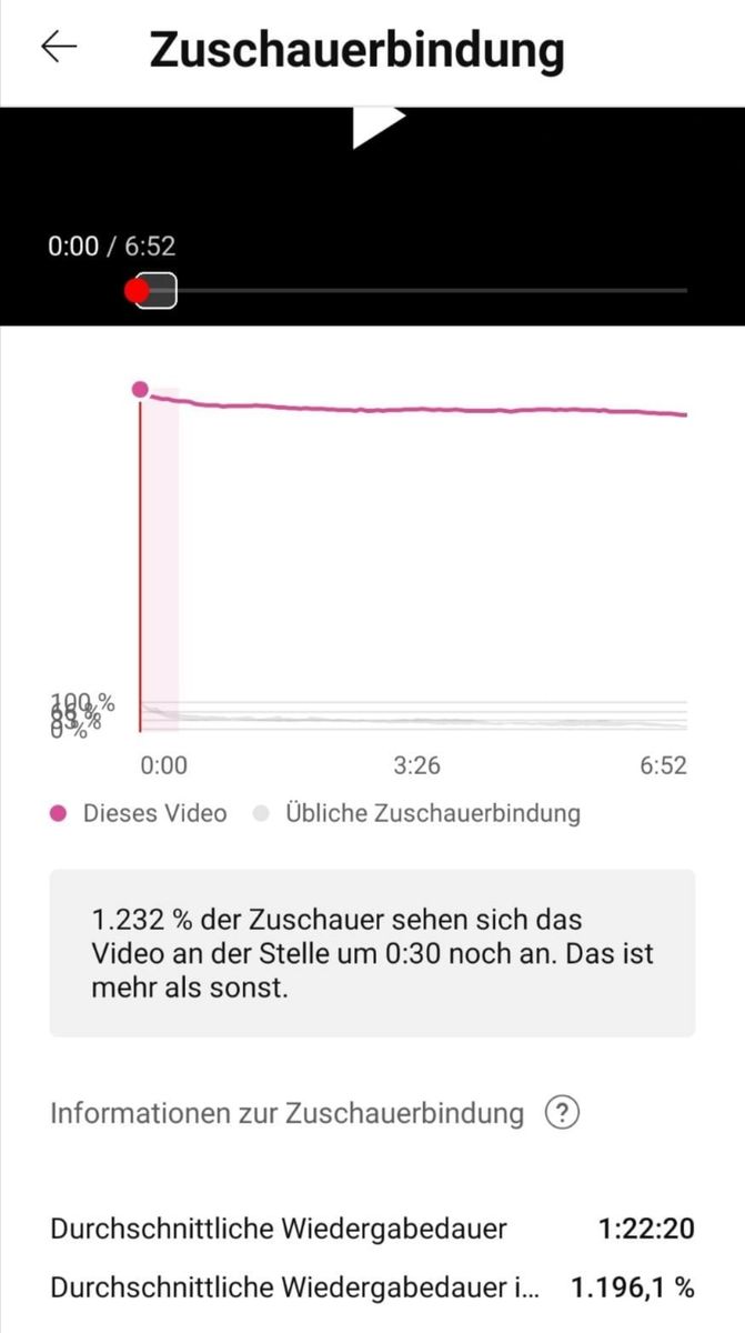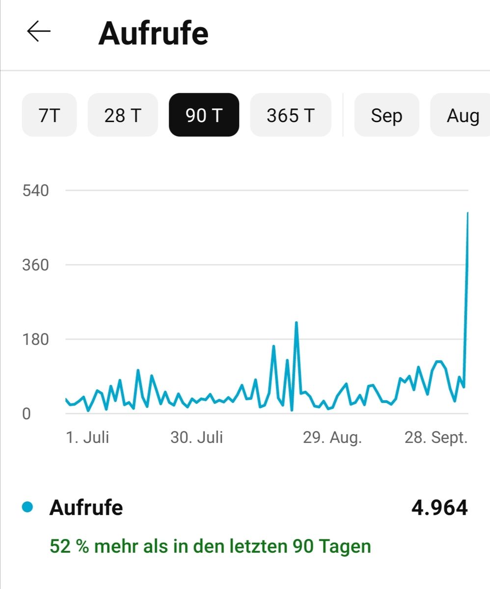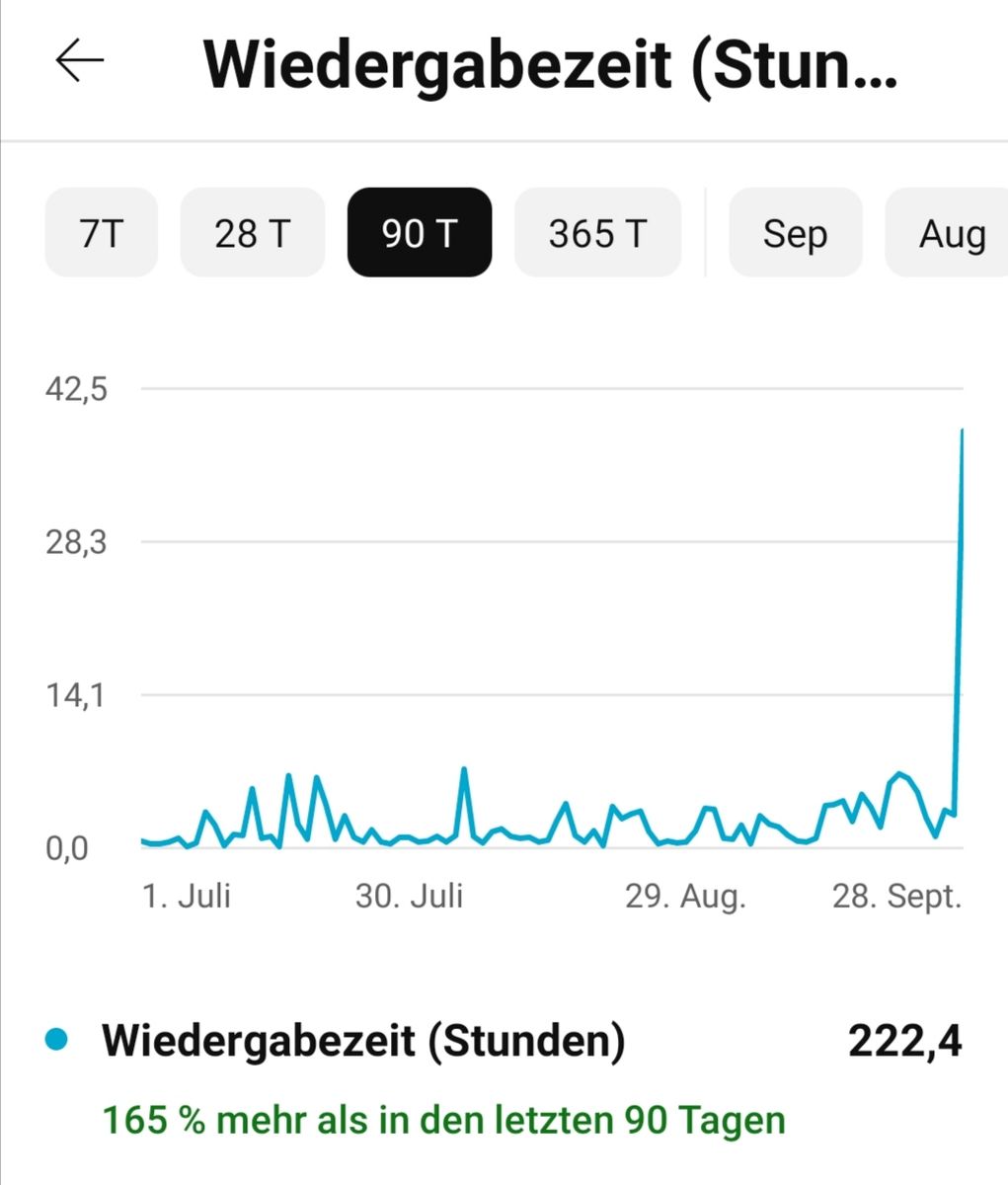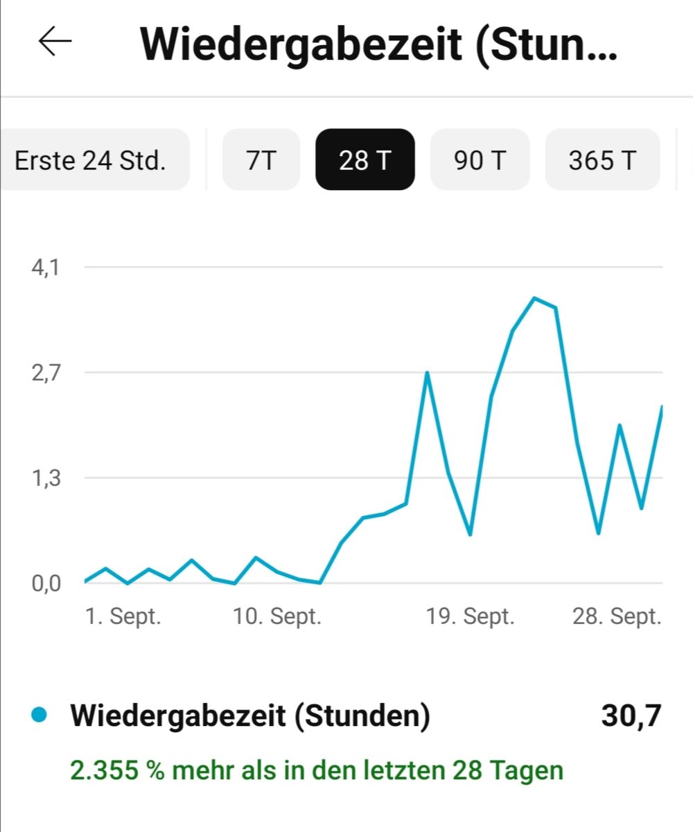 Jetzt haben aber super viele Videos von mit einen extremen Push bekommen und das nicht so unrealistisch mit 2.000% Wiedergabezeit oder so wie beim letzten Mal, sondern eher realistischeren Zahlen.