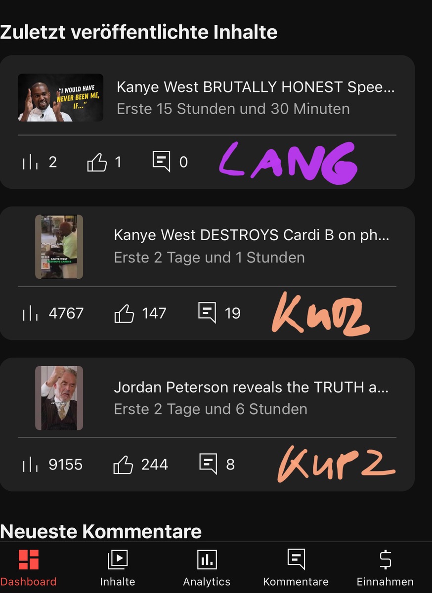 Bei Langform-Content ist das halt eine ganz andere Sache, um 1000 Views oder mehr zu bekommen, muss das Video schon einen gewissen Qualitätsgrad erreicht haben.