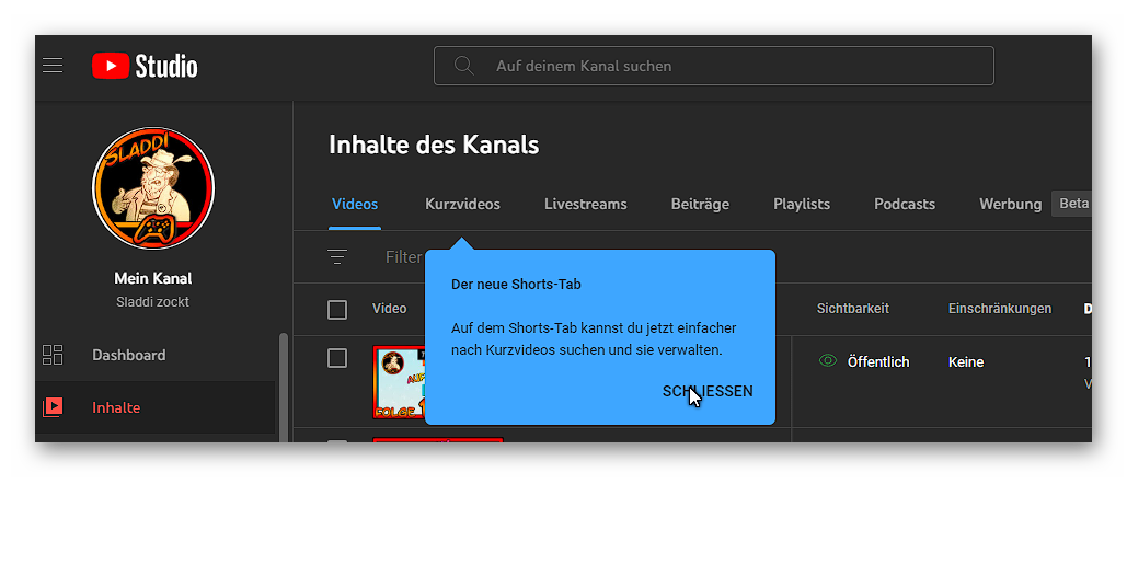 ✨Neues Feature: "Short-Tab" im Studio (unter "Inhalte") ✨