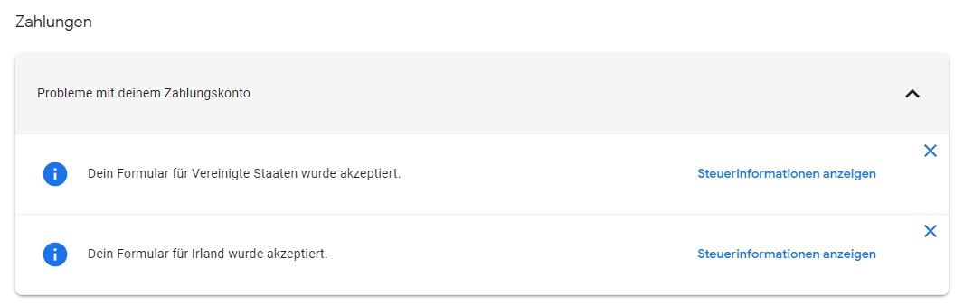 Wenn ich darauf klicke kommt unter Zahlungen und Zahlungsinformationen "Es sind Probleme mit Deinem Zahlungskonto aufgetreten"