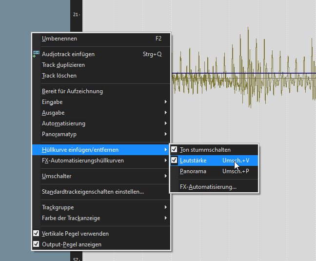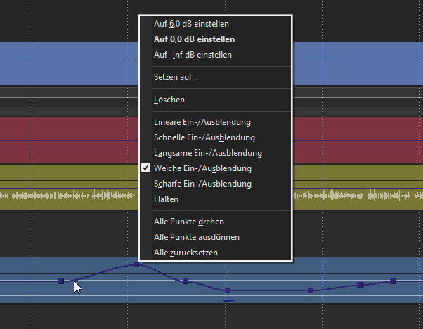 Grüßt euch! Also Folgendes: ich möchte in meinem Video ein Lied abspielen, welches nach ein paar Sekunden allmählig leiser wird und dann diese Lautstärke beibehält. Ich weiß aber nicht genau, wie ich das mit Vegas hinkriege. Wenn ich so einen Fade-Out benutze, geht die Lautstärke ja auf komplett null und das möchte ich nicht. Das sieht bei mit so aus: