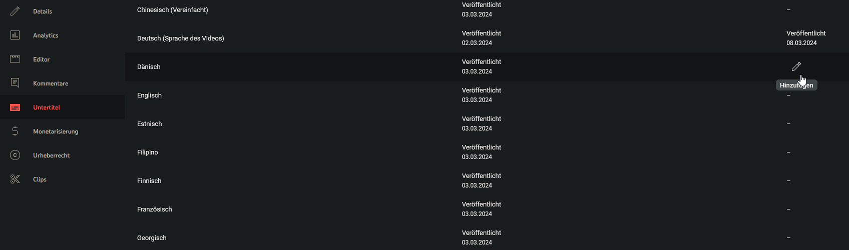 So kannst Du dann Deine Videobeschreibung und Deinen Titel für jede beliebige Sprache übersetzen, ohne dass Du dadurch Deine deutschen Titel, Videobeschreibungen oder Untertitel durcheinander bringen würdest.