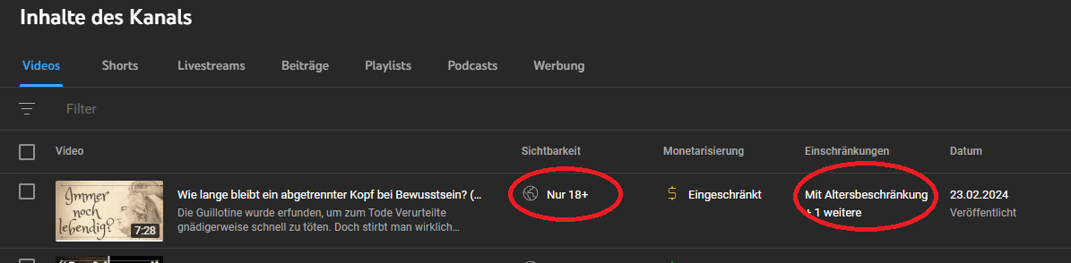 könnt ihr mir erklären woran es liegt, dass wir keine Zuschauer unter 18 Jahren haben? Da wir mittlerweile > 26.000 Aufrufe auf unsere Videos haben, würde ich ausschließen, dass es daran liegt, dass es die unter 18 jährigen nicht interessiert und eher vermuten, dass wir den unter 18 jährigen Zuschauern nicht vorgeschlagen werden. Kann man irgendwo sehen woran das liegt? Wie ist das bei euch?