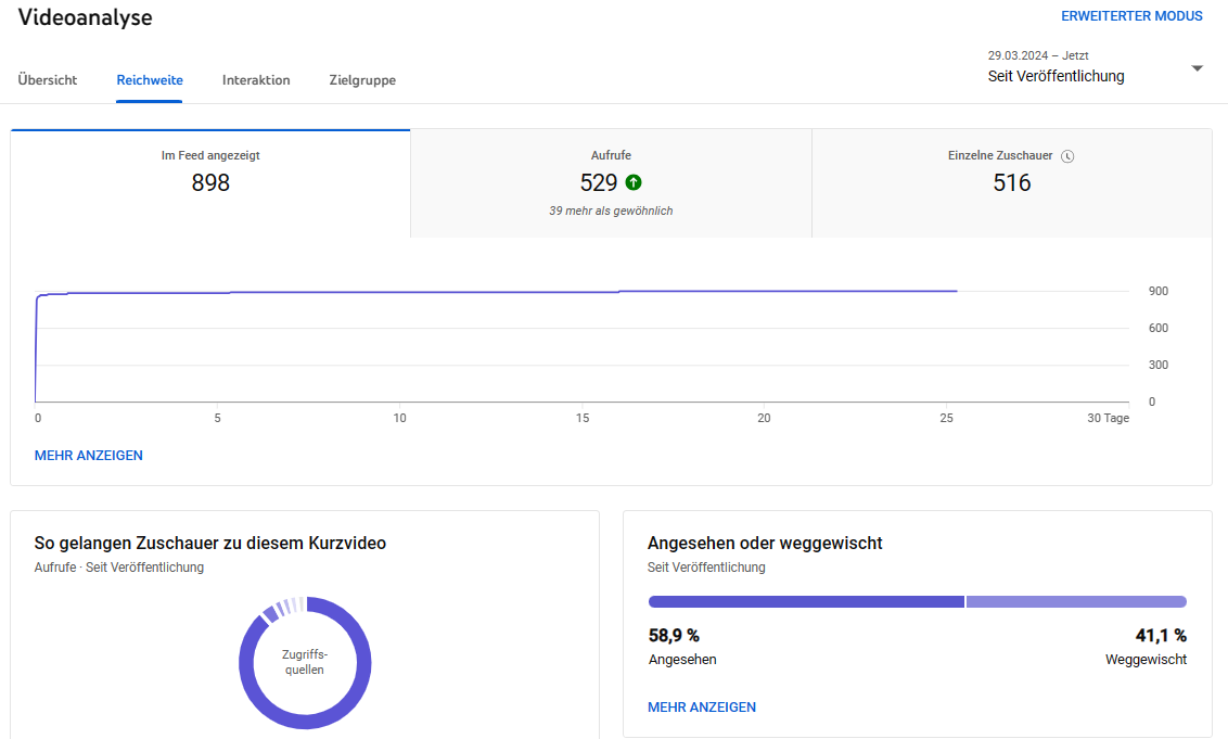 Das wirklich seltsame dabei ist, das kein Zusammenhang zwischen der Watchtime, der Clickrate oder i-was anderes besteht. Ein Video läuft super und geht in der ersten Stunde auf über 400 Aufrufe und wird dann abrupt gestoppt und nicht mehr ausgespielt. Ein anderes Video startet schlecht und erreicht nur wenige Aufrufe in den ersten Stunden und dann wird es in Etappen immer wieder ausgespielt, bis die Aufrufzahl von ca. 450 erzielt wurde. Anfangs habe ich mir nichts dabei gedacht, mittlerweile geht das aber seit über 2 Monaten so und es fing wirklich ad-hoc mit dem sehr guten Short an. Habe nach über einem Monat dann auch Pausentage eingelegt, in der Hoffnung das sich das i-wie "normalisiert" aber bisher ist es weiterhin so. Egal was, wann, wie ich poste, das Video erreicht seine ca. 450 Aufrufe und dann wars das. Ich habe alles zwischen 20 und 58% Clickrate, Teilweise 200% Wiedergabezeit, alles führt zum selben Ergebnis.