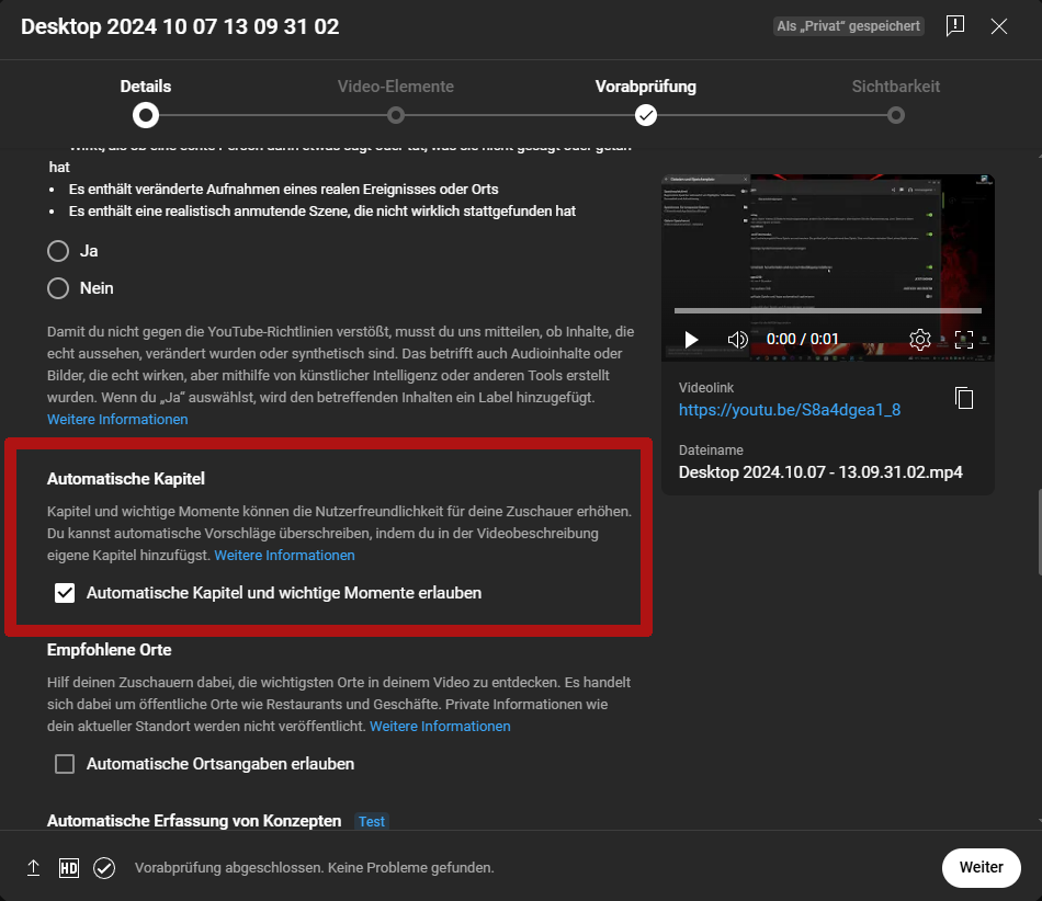 Hab leider ein (für mich) großes und vor allem unerklärliches Problem. Wenn ich Time Steps a.k.a. Zeitstempel, oder auch Kapitelmarkierungen setzen will, das ganze dann abspeichere und nachgucke, klappt es nicht. Es wird einfach nicht übernommen, ganz egal was ich mache. Hab schon einige Tutorials durch geschaut und ich bin mir sicher absolut alles richtig zu machen. Ich beginne bei Zeitstempel "00:00" als Anfangspunkt, ich setze die Zeiten Chronologisch untereinander und nicht kreuz und quer, ich schaue genau hin, dass auch alle Zeiten korrekt sind ... Aber nichts klappt! ![]()