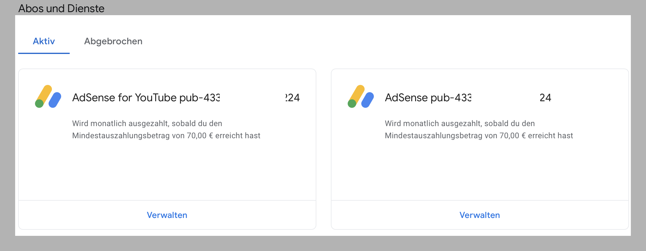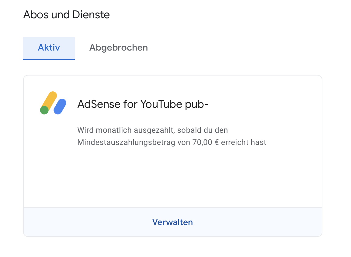 Ich würde gerne ein AdSense Konto mit meinem YouTube Kanal verknüpfen. Die Funktion wurde mir in der ersten Stufe (500 Abos und 3000h Wiedergabezeit; für z.B. Supers u. Shopfunktionen) in YT-Studio angeboten.