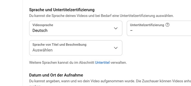 Ich wollte in einem neuen Video natürlich für Beschreibung und Untertitel auch Englisch einstellen und habe - etwas in Eile - auch auf der Hauptseite des Youtube Studios beim Punkt "Sprache von Titel und Bearbeitung" "Englisch (Vereinigtes Königreich)" eingestellt.