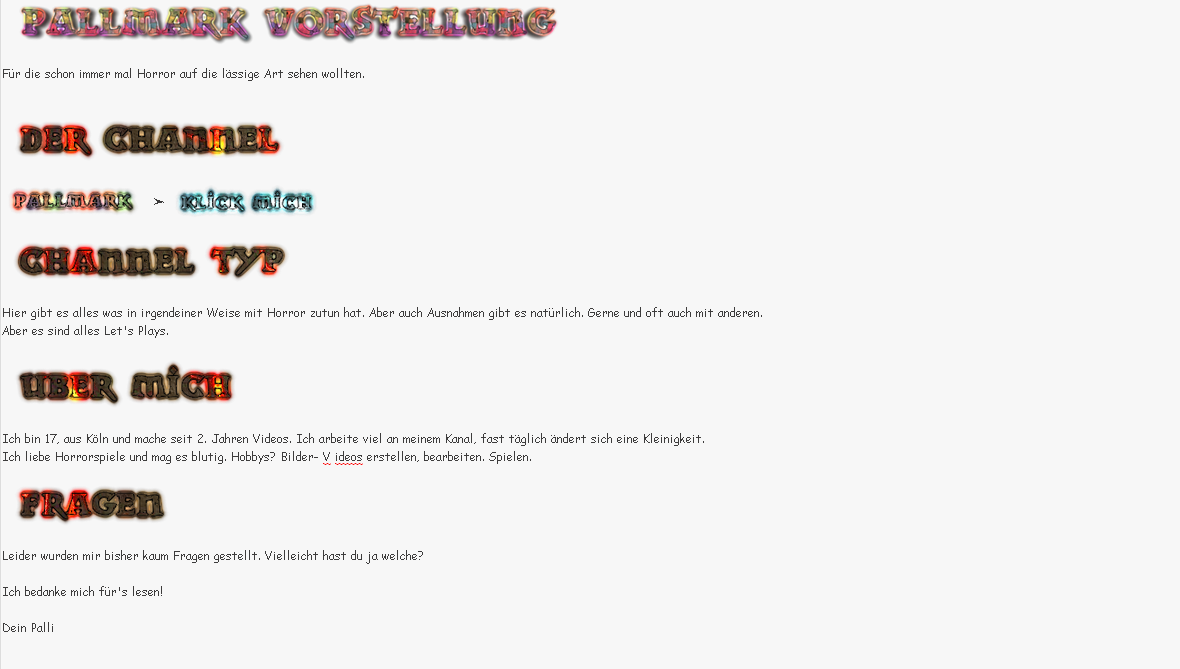 Ich bin 17, aus Köln und mache seit 2. Jahren Videos. Ich arbeite viel an meinem Kanal, fast täglich ändert sich eine Kleinigkeit.