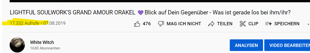 - zuletzt wollte ich tatsächlich noch alles auf Eis legen und meinen Kanal löschenWas hat dich abgehalten? Als Tipp vielleicht noch: stell die Videos mit den meisten Klicks in eine Playlist und binde sie in deine Übersicht ein, damit verkaufst du deinen Kanal besser.