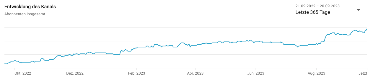 Habe erst im Oktober letztes Jahr so richtig angefangen. Vorher gab es nur ab und zu mal ein Video. Die Abos stagnieren jetzt noch, hoffe aber daß ich mit der Zeit ein paar dazu bekomme.