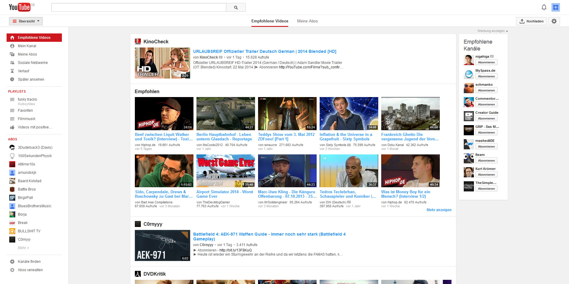 Wäre schön wenn sie die Kategorien wieder wie damals machen würden. Sprich: Keine Playlist mit den am meisten geschauten Videos, sondern das alle Videos einer Kategorie nach Uploaddatum sortiert angezeigt werden würden...