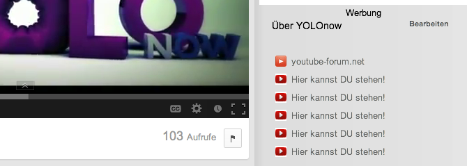 Wenn du dort für eine Woche stehen möchtest, kannst du mir eine Nachricht auf Youtube schicken (mein Kanal: http://www.youtube.com/user/YOLOnow), dann seh ich auch gleich deinen Kanal, damit ich ihn richtig verlinke!