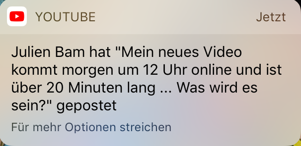 Ok, also haben wir unsere neue Schlagzeile: YT führt neue Masche ein - Benachrichtigungen von YTern die du nicht abonniert hast, aber fast täglich guckst und deswegen endlich auf Abo setzten sollst!
