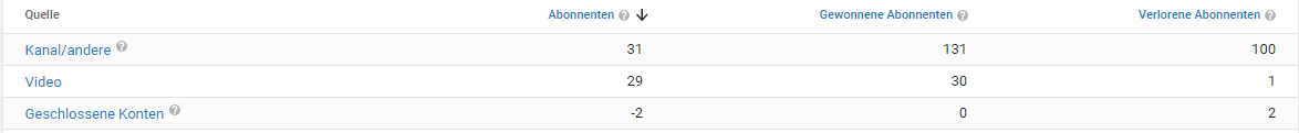 Ingesamt brachte mir das ca 150 Abos ein, was natürlich am Anfang von YT ne Menge ist. Jedes Mal, wenn mich mehrere Leute in kurzer Zeit abonniert haben, wurden mir diese binnen kurzer Zeit wieder abgezogen...
