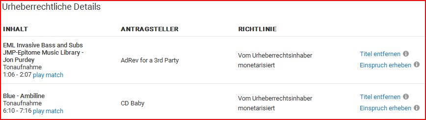 "Für dein Video liegen 2 urheberrechtliche Ansprüche vor."
