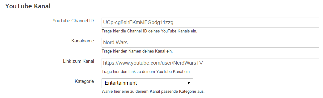 Ich habe für euren YouTube Kanal eine neue Kategorie im Benutzerprofil angelegt.