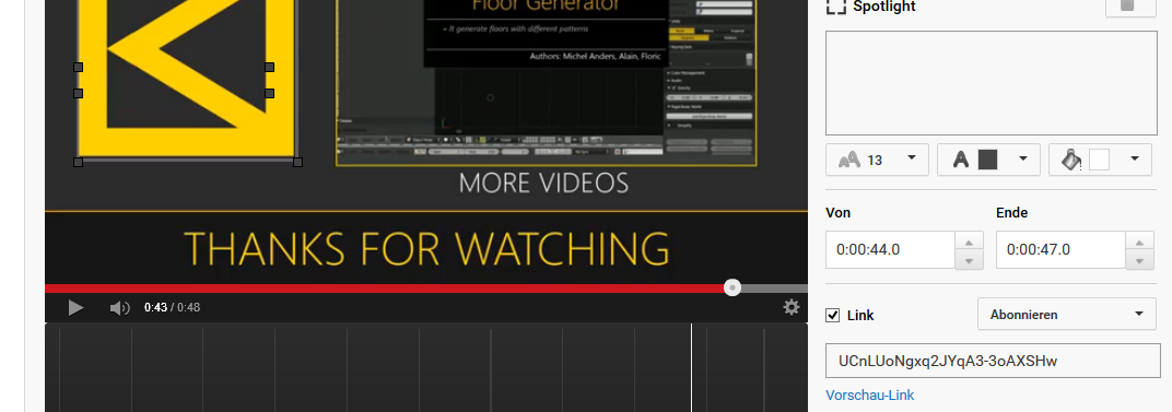 Ich hab da mal ne Frage. Wenn ich in meinen YT Videos eine Anmerkung im Video Manager einfüge und den Haken bei "Link" mache und in dem dann anwählbaren drop down Menu "abonnieren" anklicke" will YT, dass ich den YT Benutzernamen des zu abonnierenden Kanals eingebe. Das funktioniert bei mir nicht. Wenn ich "Hans Archery" eingebe passiert nichts und wenn ich einfach den Link zu meinem Kanal einfüge kommt man nach dem Klick zu meinem kanal und nicht wie erwartet zum Abo Button. Kann mir da jemand helfen?