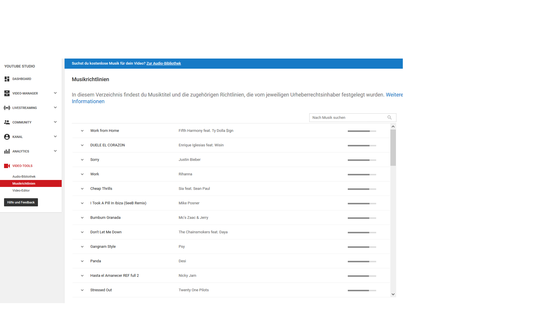 Einige sagen man kann es bei Video Tools die lieder suchen, aber wenn ich gleich stichpunkt artig mal so ein Berühmten HS DJ in die suche eingebe findet er das nicht.