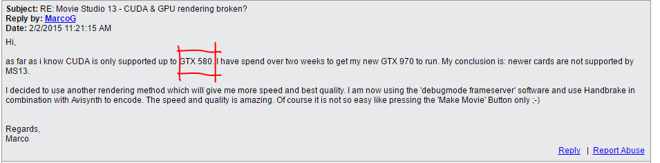 Ich kenne mich bei Vegas jetzt nicht so aus, weil ich das nicht nutze, aber hast du denn den aktuellsten Treiber der GTX970 installiert? Vielleicht liegts ja daran.
