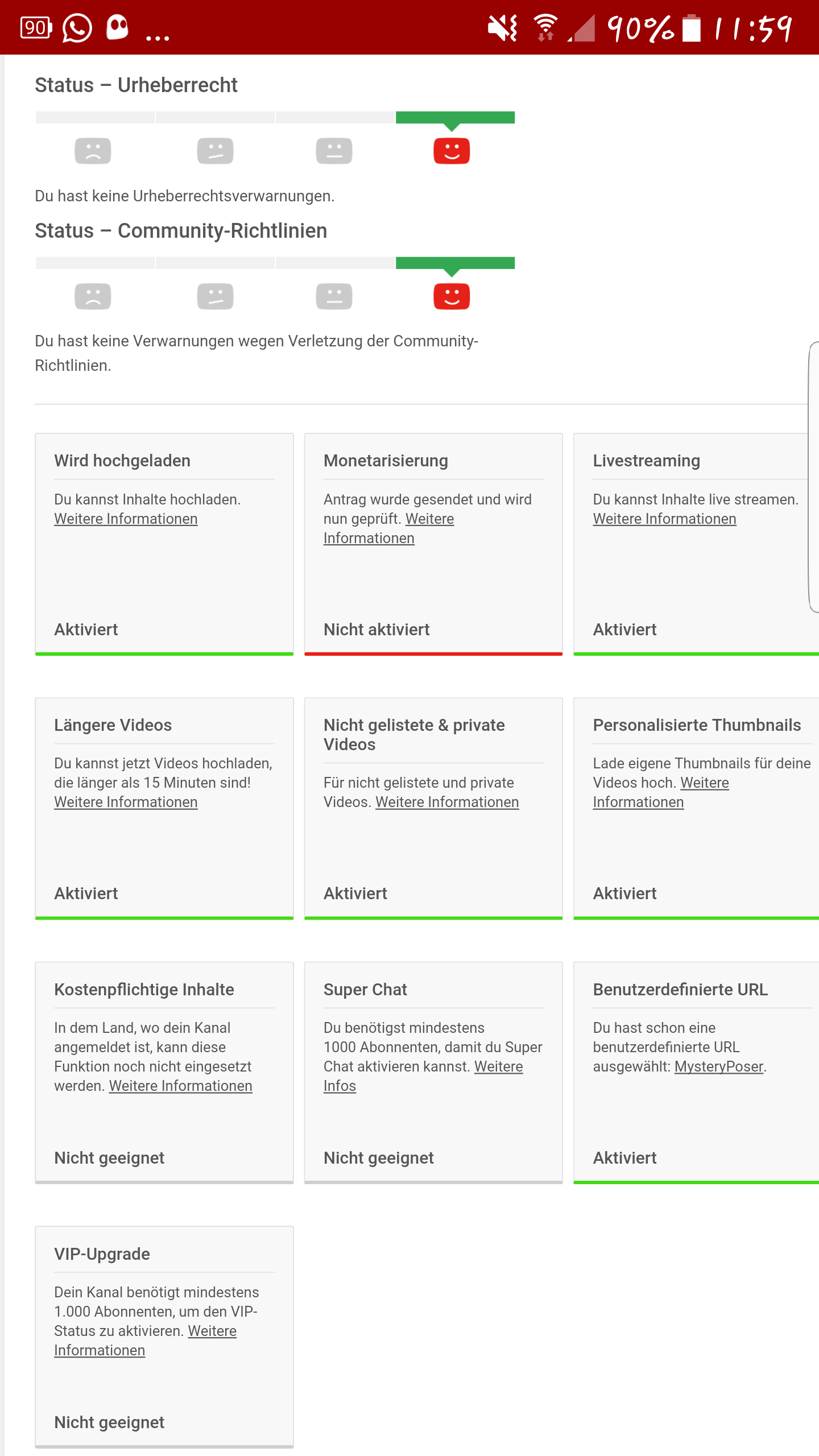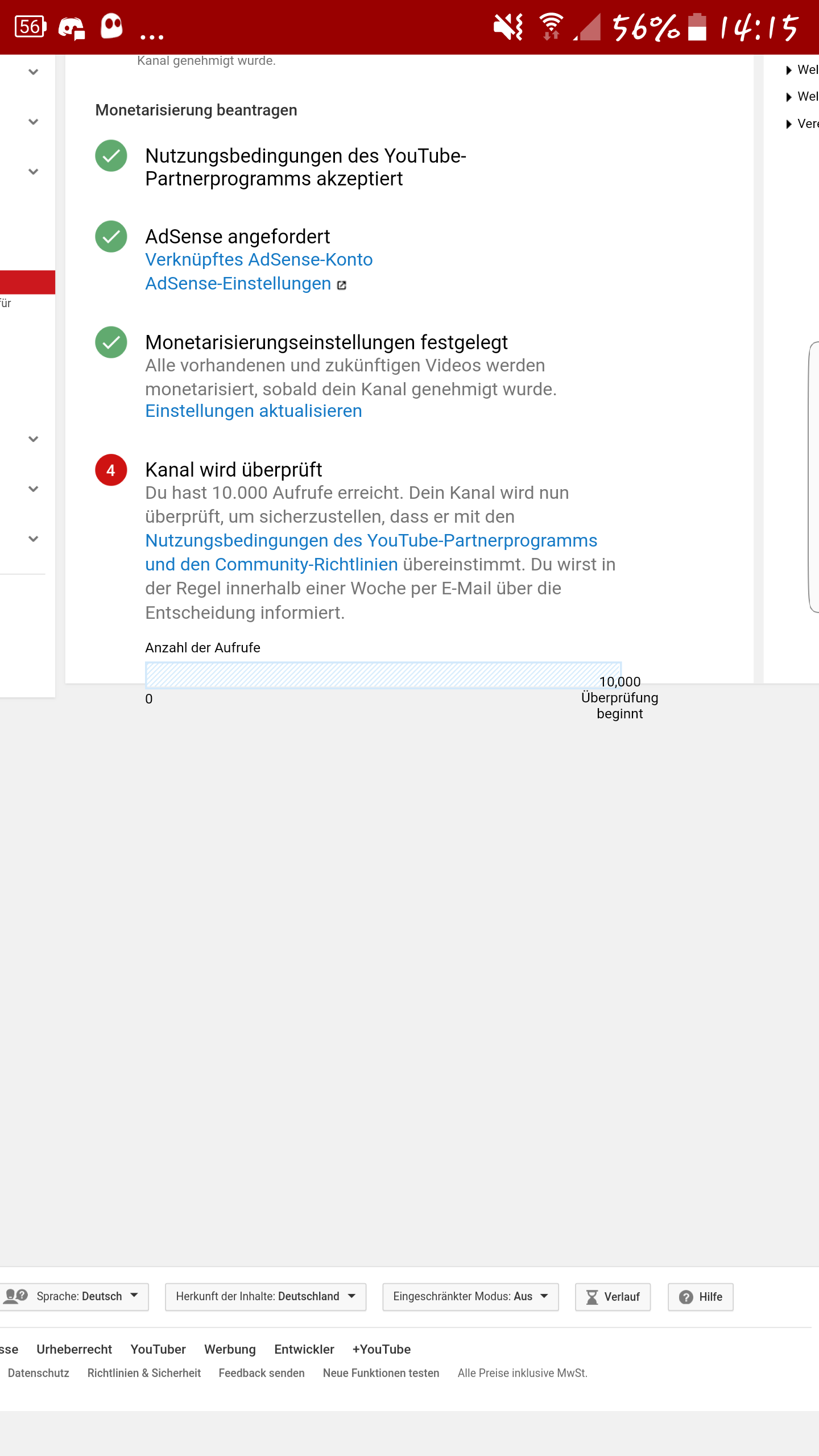 Ich wollte mal fragen wie lange so eine Überprüfung dauert? Bei AdSense hat bereits alles geklappt jetzt fehlt nur noch die Bestätigung von Youtube.