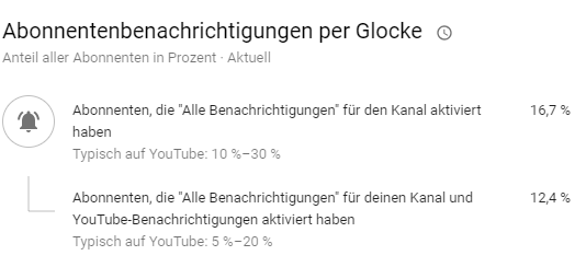 Ich möchte mal einen Vergleich starten um in Erfahrung zu bringen wie und wo ich aktuell stehe. Wie sich eure Abonnenten gegenüber eurem Kanal verhalten? Haben viele eurer Abonnenten die Glocke auch wirklich aktiviert? Mein Durchschnitt sieht aktuell wie folgt aus ... Ich frage mich ob das einigermaßen in Ordnung ist? Klar, ein besser geht immer ...