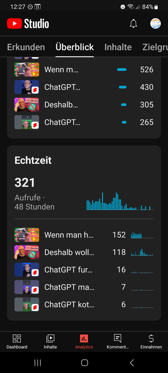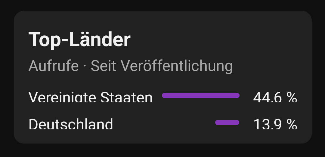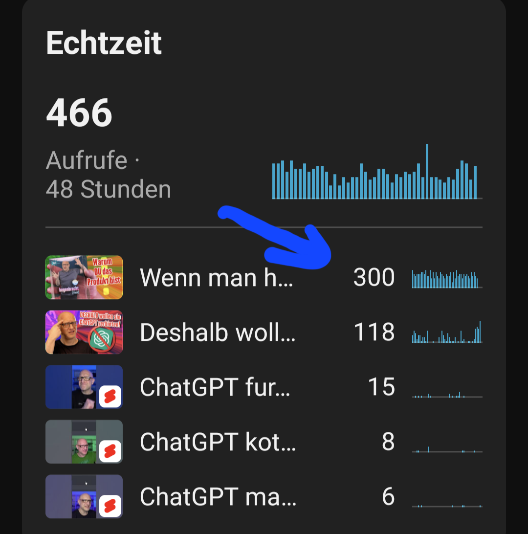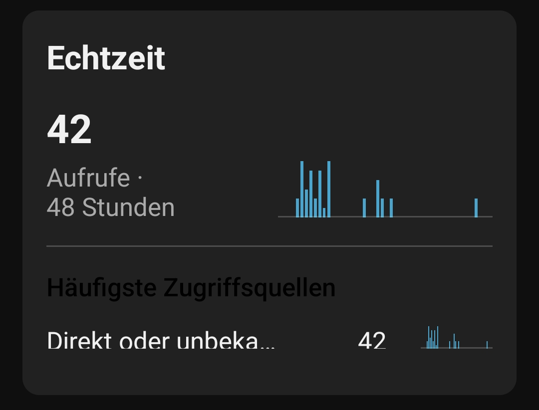 Ein ein Jahr altes Video von mir erhielt plötzlich konstant Aufrufe von "Direkt oder Unbekannt" - alle aus den USA - dabei mache ich meinen Content in Deutsch. Und ich bin ein kleiner Kanal mit 190 Abos. Erst dachte ich - OK, vielleicht wird dieses Video in einem Deutschkurs oder so vorgeführt. Aber es gab auch nie Einbrüche - und irgendwann ist es ja auch in den USA mal Nacht. Außerdem gab es nie Kommentare oder Bewertungen. Das Ganze ging ca. 4 Tage und ca. 400 Aufrufe lang so. Damit hatte es mehr Aufrufe, als mein aktuelles Video. Dann brach es genauso abruppt ab, wie es gekommen ist. Vorerst zumindest. Als Youtube mir die Aufrufe alle Nach und Nach wieder abgezogen hat, dämmerte es mir: Das muss ein Bot sein: