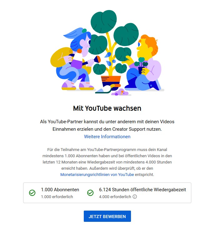 Aber den Jetzt bewerben Button ignoriere ich, weil es nie mein Ziel war meinen Kanal zu monetarisieren, ich mache es ja ausschließlich als Hobby