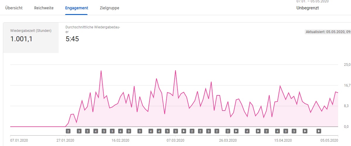dann kam Corona und alles geht nur sehr schleppend weiter. Aktuell 166 Abos. Am WE wurden die 10.000 Aufrufe erreicht. Abos aber meist