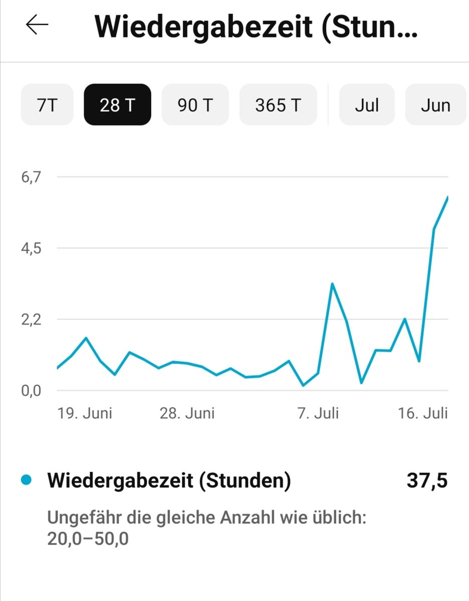 Wenn ich an einem Tag über 10 Stunden Wiedergabezeit habe und diese 10 Stunden danach dann weg sind, dann denke ich, dass ich das schon richtig sehe, dass Daten gelöscht worden sein müssen. Genau auf so etwas habe ich eben geachtet. Bei den beiden aktuellen Screenshots ist erst über 4 Stunden Wiedergabezeit dabei und jetzt ist genau das verachwunden. Das sind die Unregelmäßigkeiten, die ich immer wieder sehe und das schon seit 2-3 Wochen.