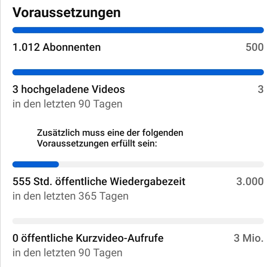 Mir ist heute Früh aufgefallen, dass YouTube, was die Monetarisierung angeht, einiges an den Voraussetzungen am Partnerprogramm teilnehmen zu dürfen, geändert hat.