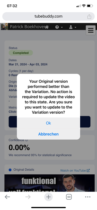 Und dein Kanal läuft ja weiter. Oder sind deine Zahlen total eingebrochen? Wenn nicht, dann würde ich mich da nicht reinsteigern… und über den eigenen Erfolg freuen. Denn den hast du, ohne Zweifel.