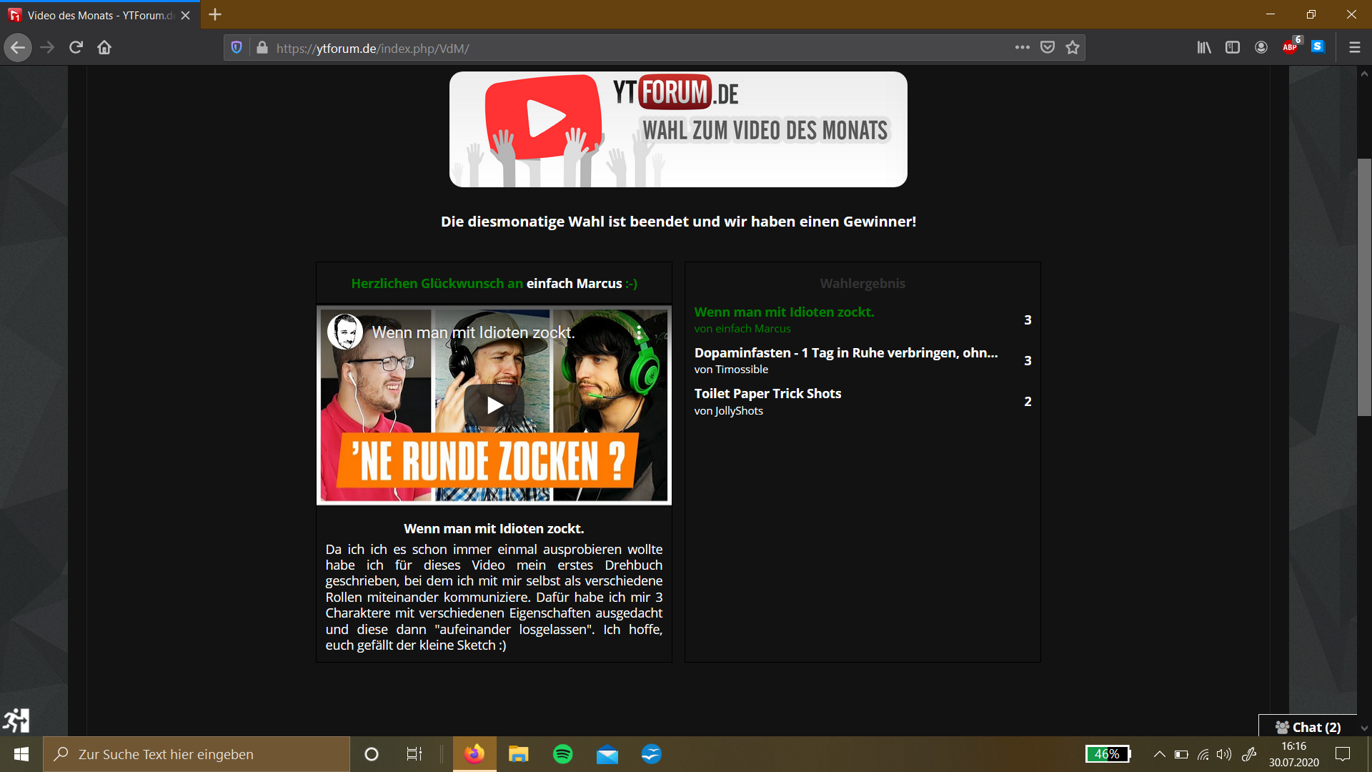 Also wirklich nichts für Ungut, einfach Marcus hat es auf jeden Fall verdient zu gewinnen, ich mochte das Video und akzeptiere absolut eure Entscheidungen und die Regeln.